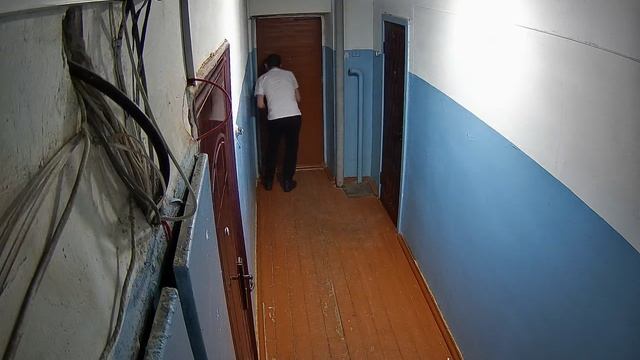Вернулся и клеет замок. Портит имущество.